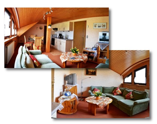 Das gemütliche Wohnzimmer mit Fernseher und Stereoanlage sorgt für entspannte Stunden.